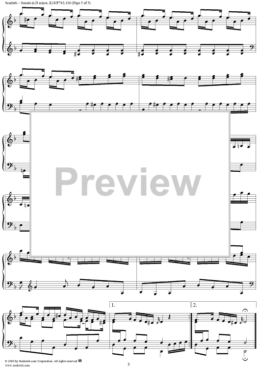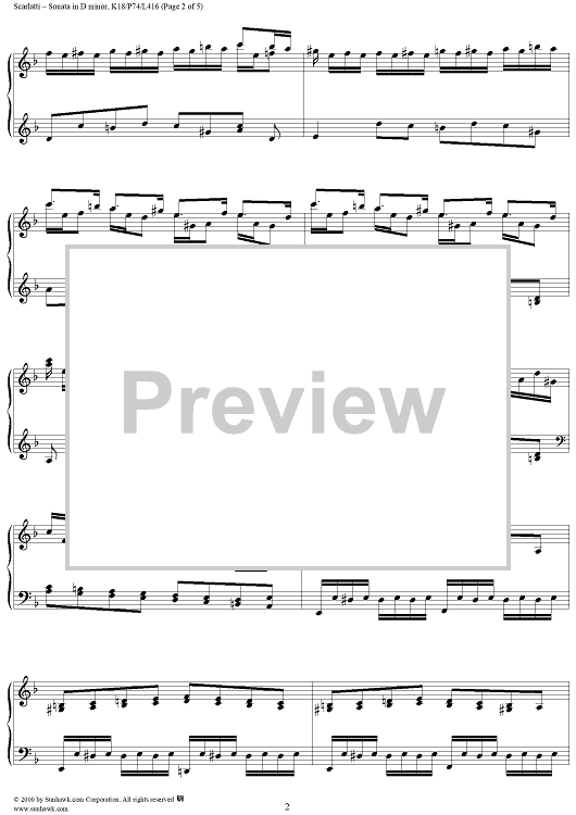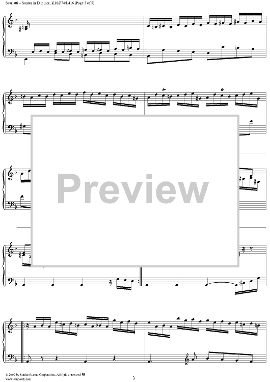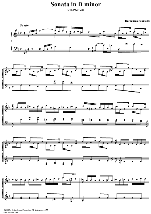 Digital Sheet Music for Sonata in D minor, K. 18 by Domenico Scarlatti scored for Piano Solo; id:151646
