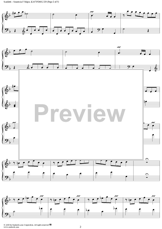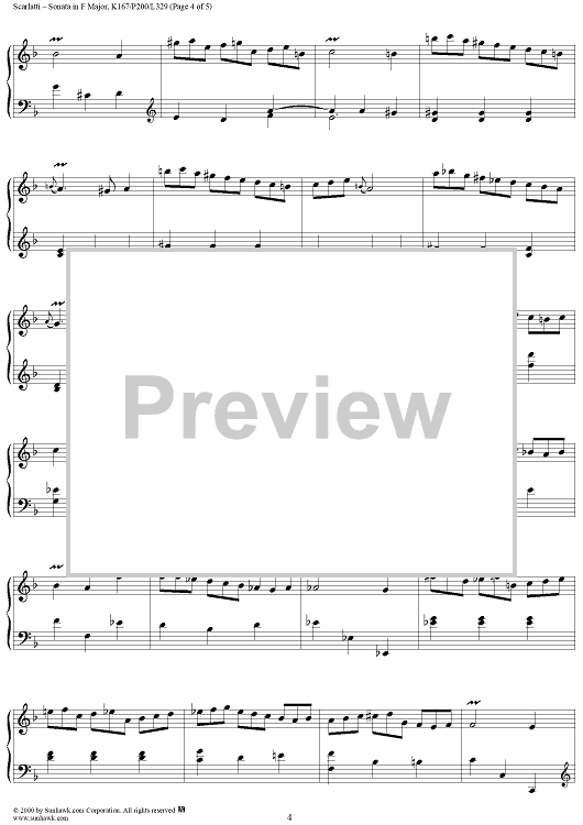 Digital Sheet Music for Sonata in F major, K. 167 by Domenico Scarlatti scored for Piano Solo; id:203717