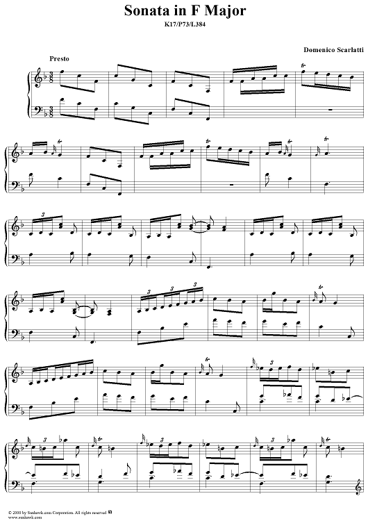 Digital Sheet Music for Sonata in F Major, K. 17 by Domenico Scarlatti scored for Piano Solo; id:151652