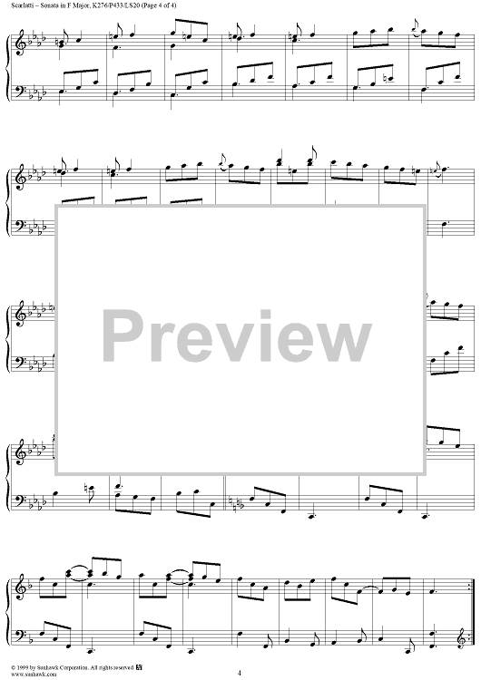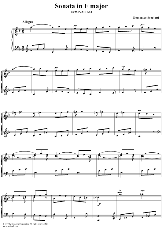 Digital Sheet Music for Sonata in F major, K. 276 by Domenico Scarlatti scored for Piano Solo; id:118128