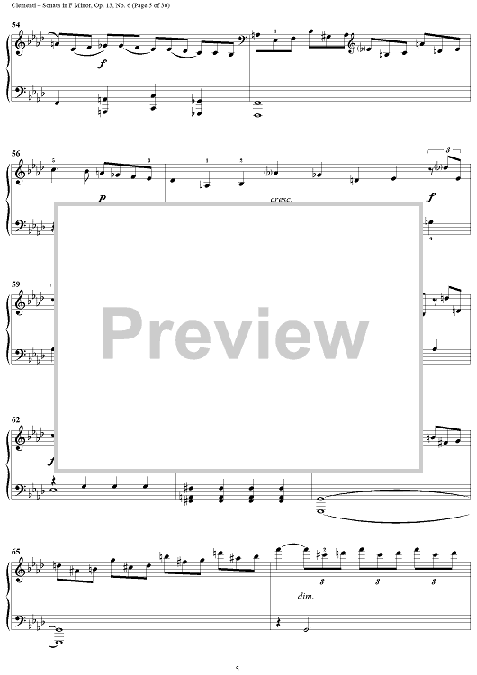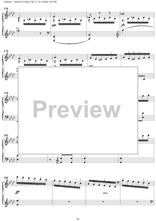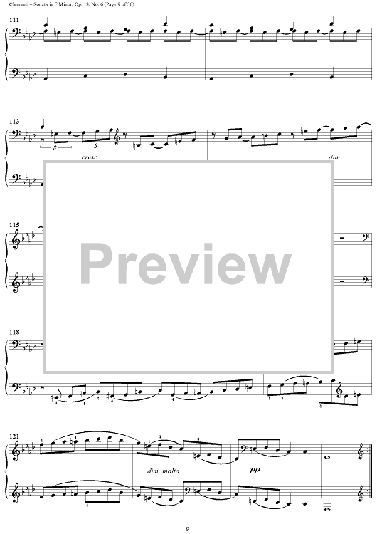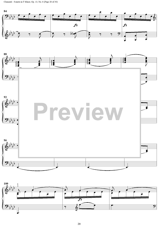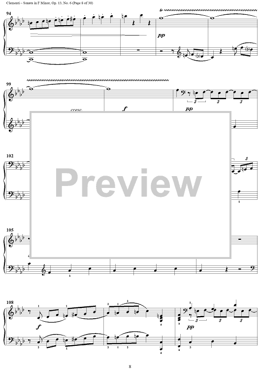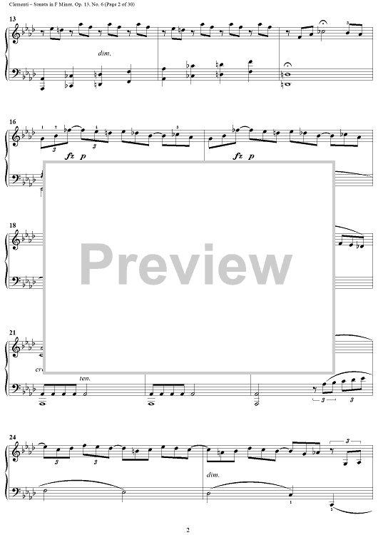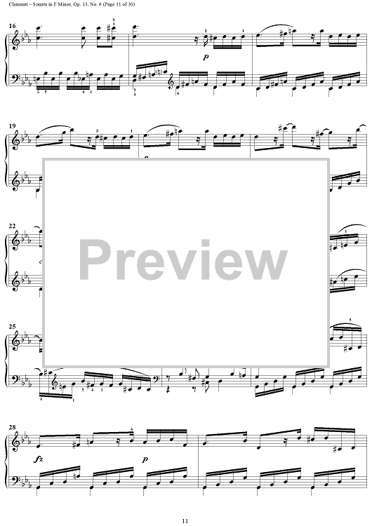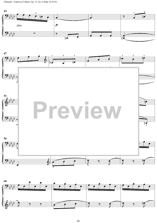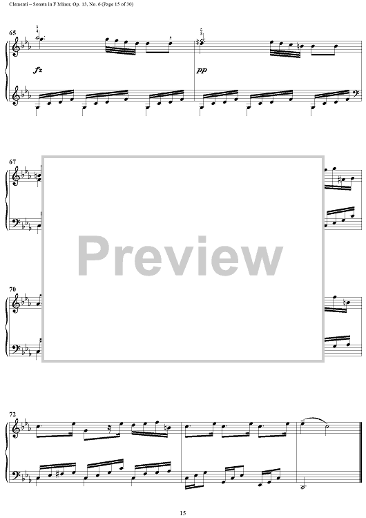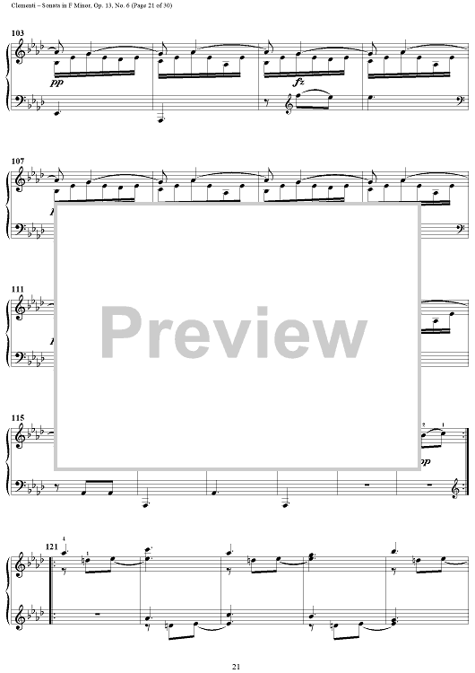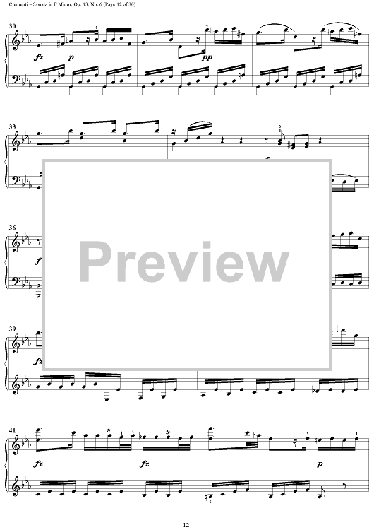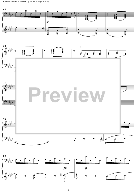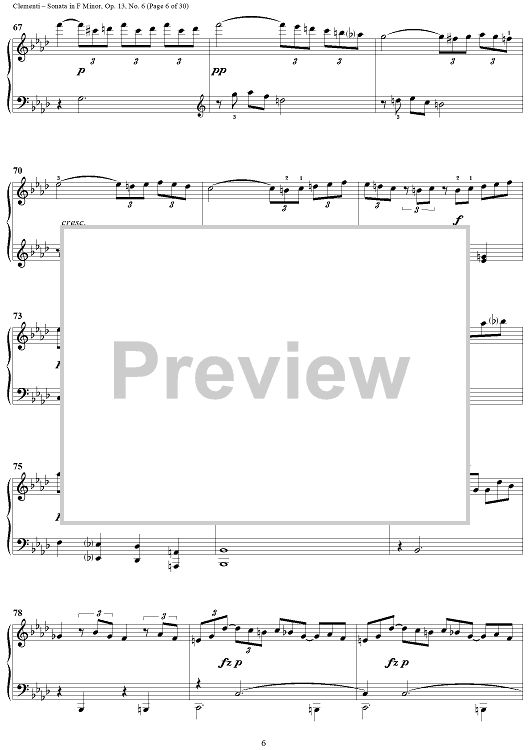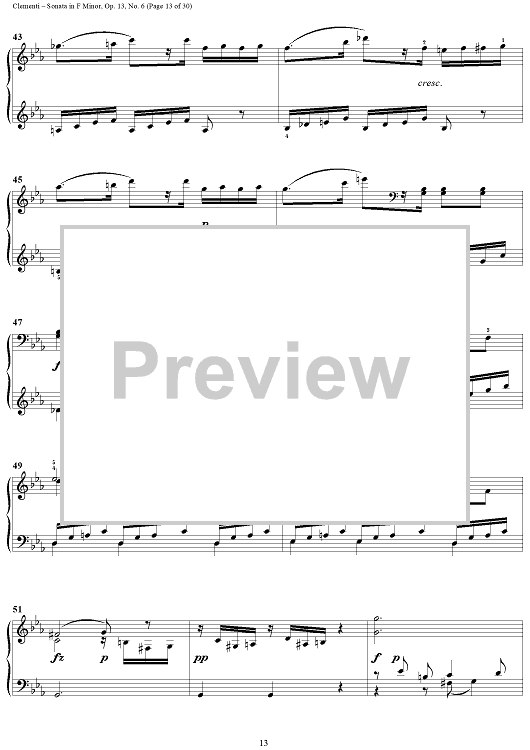 Digital Sheet Music for Sonata in F Minor, Op. 13, No. 6 by Muzio Clementi scored for Piano Solo; id:285549