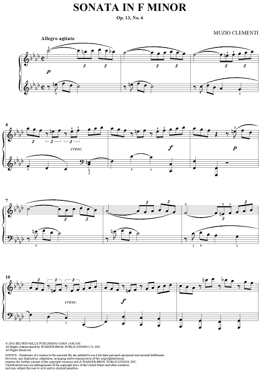 "Sonata in F Minor, Op. 13, No. 6" Sheet Music by Muzio Clementi