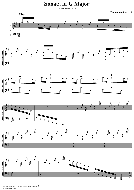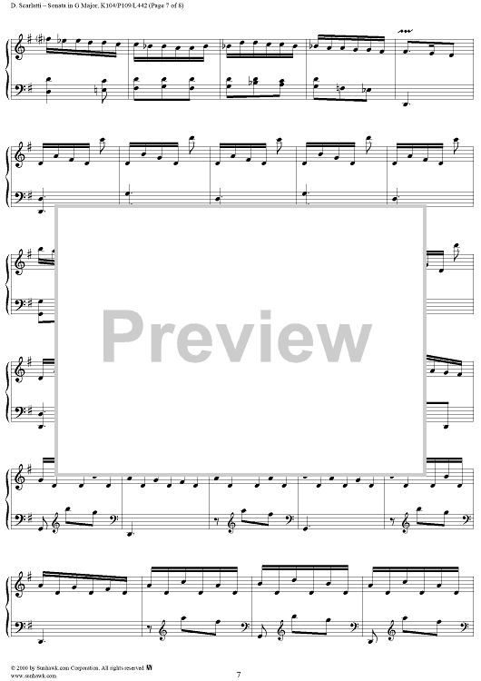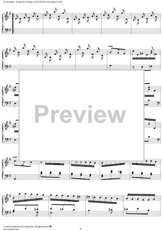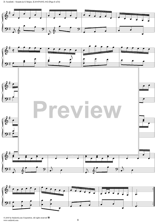 Digital Sheet Music for Sonata in G major, K. 104 by Domenico Scarlatti scored for Piano Solo; id:170148