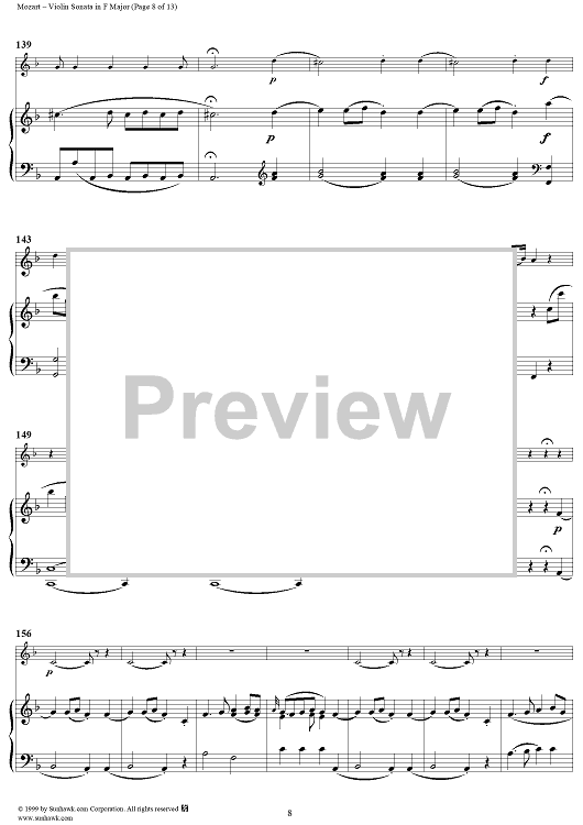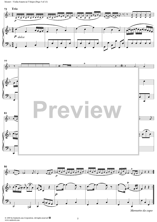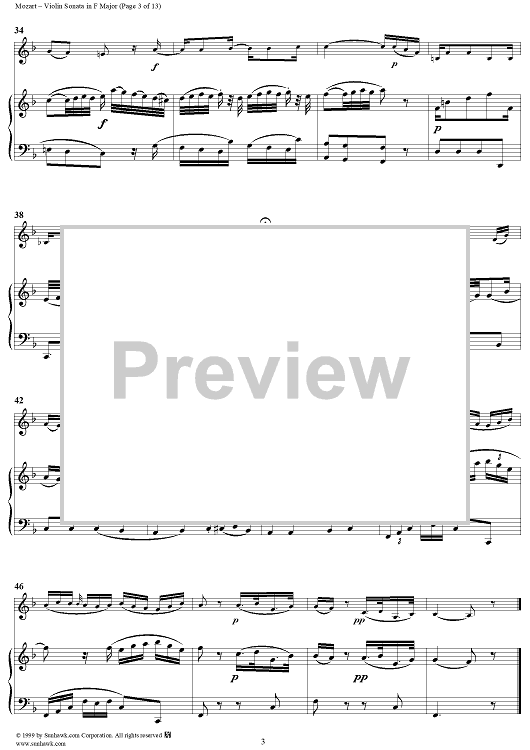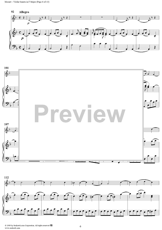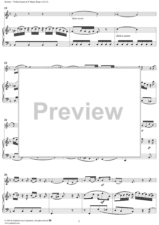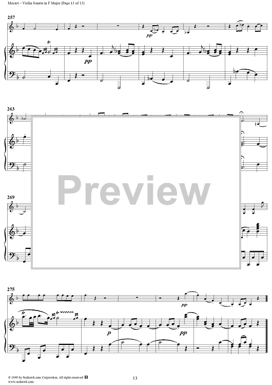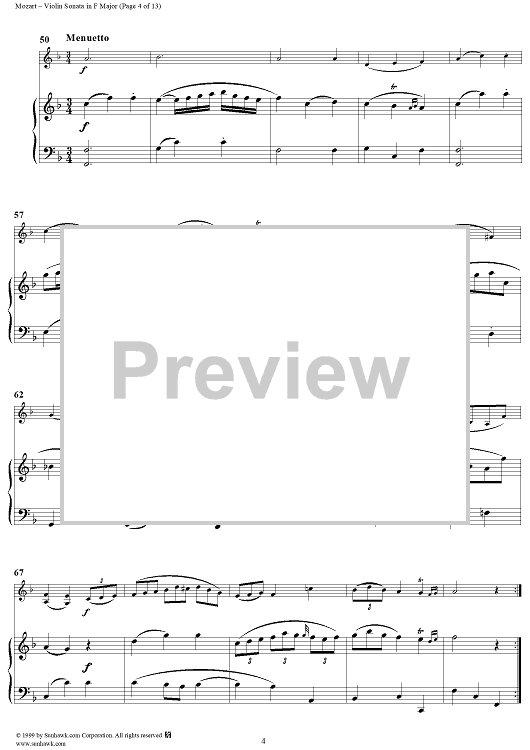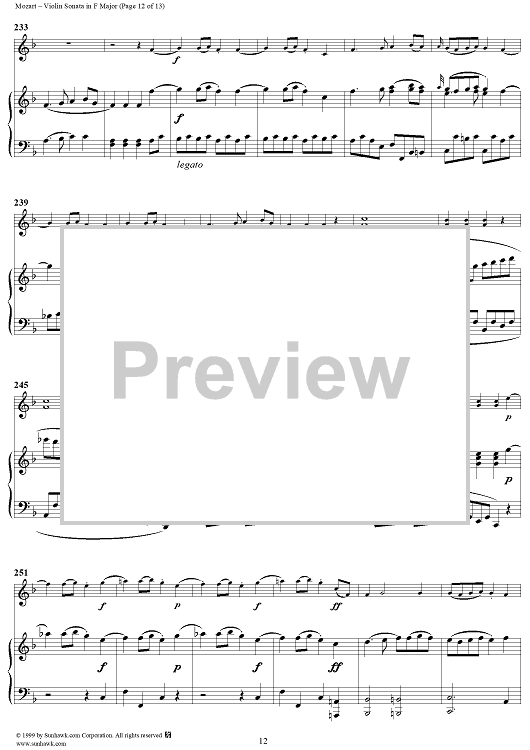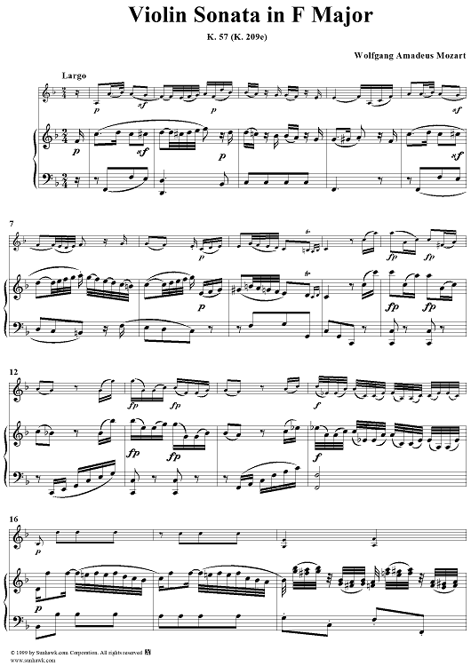 Digital Sheet Music for Violin Sonata in F major, K. 57 - Piano by Wolfgang Amadeus Mozart scored for Violin/Piano; id:119409