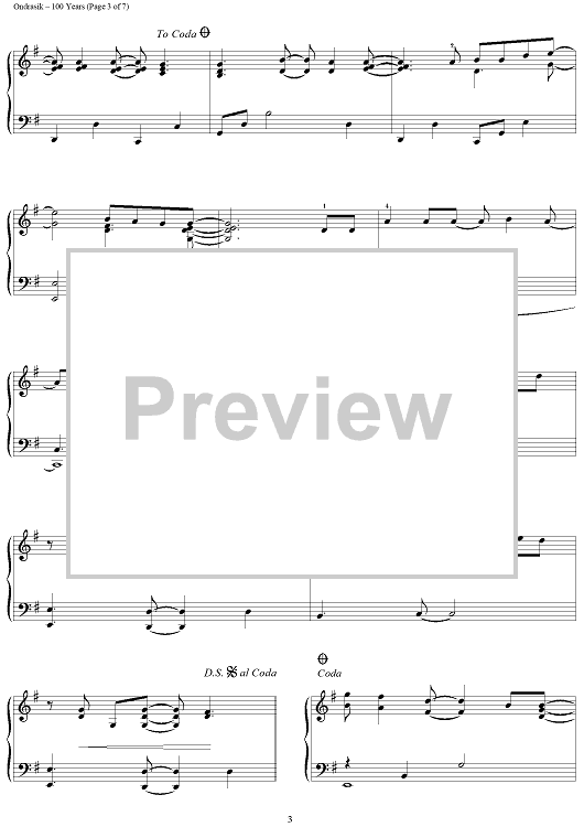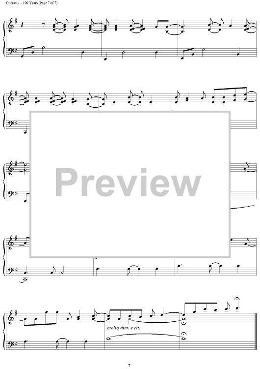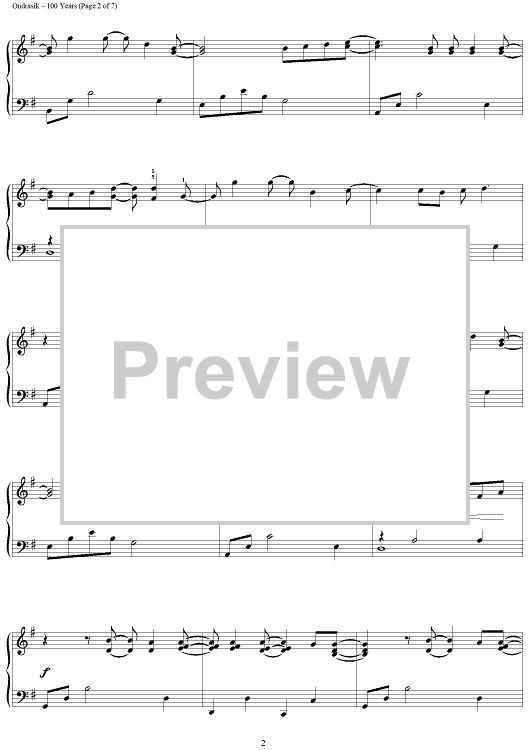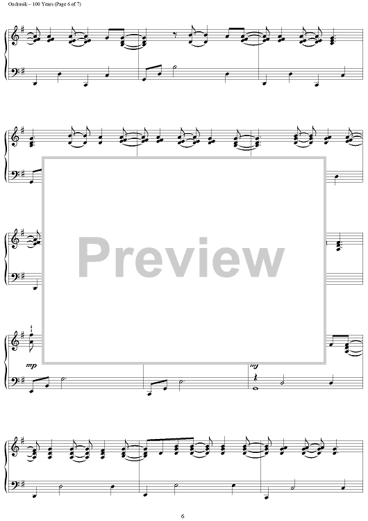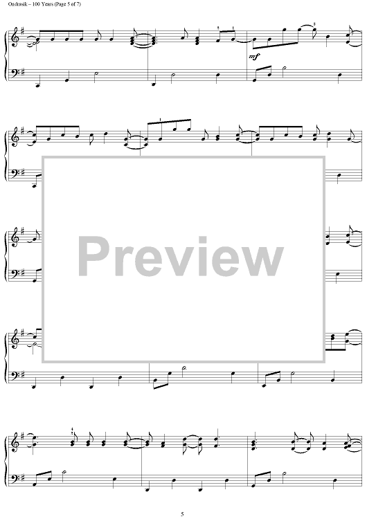 Digital Sheet Music for 100 Years by Five for Fighting scored for Piano Solo; id:389391