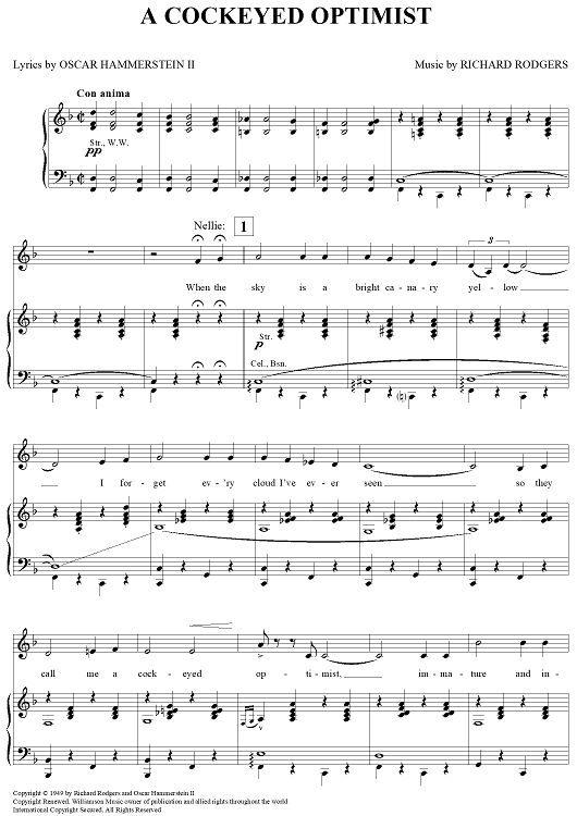 "A Cockeyed Optimist" Sheet Music by Richard Rodgers