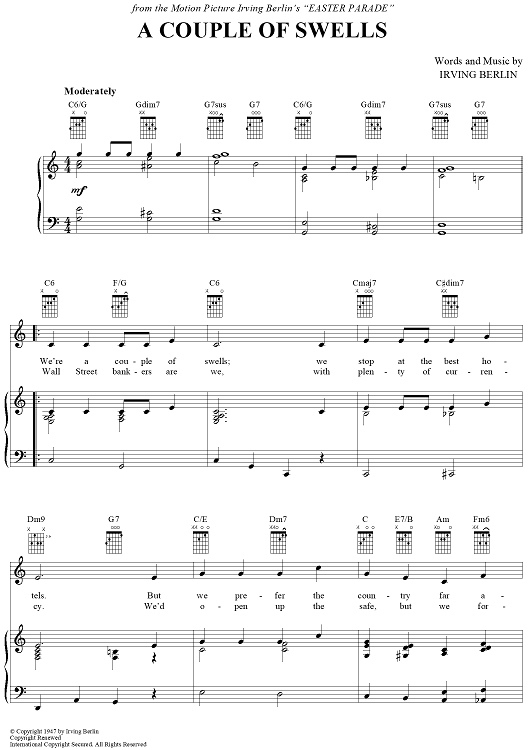 Digital Sheet Music for A Couple of Swells by Irving Berlin scored for Piano/Vocal/Chords; id:403236