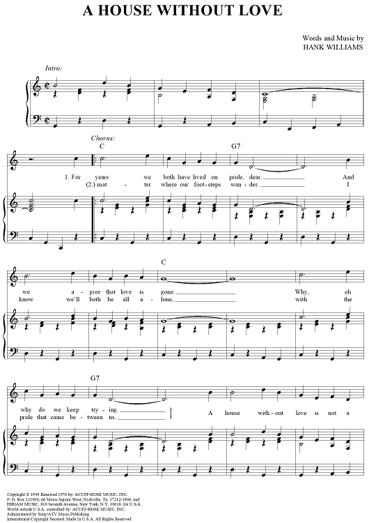 Digital Sheet Music for A House without Love by Hank Williams scored for Piano/Vocal/Chords; id:361883