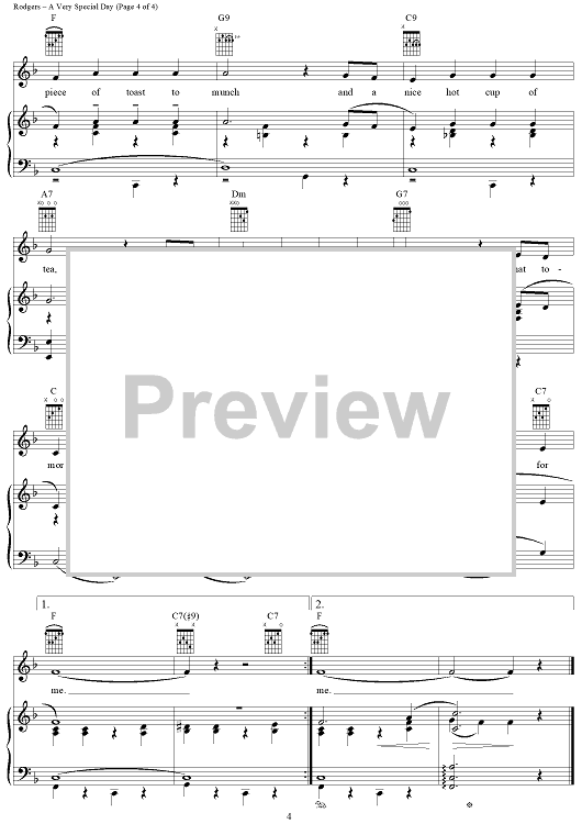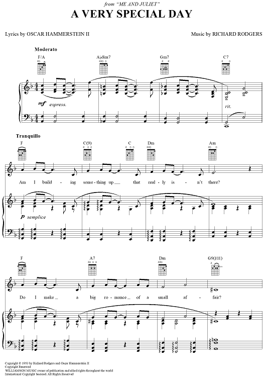 Digital Sheet Music for A Very Special Day by Richard Rodgers, Oscar Hammerstein II scored for Piano/Vocal/Chords; id:367107