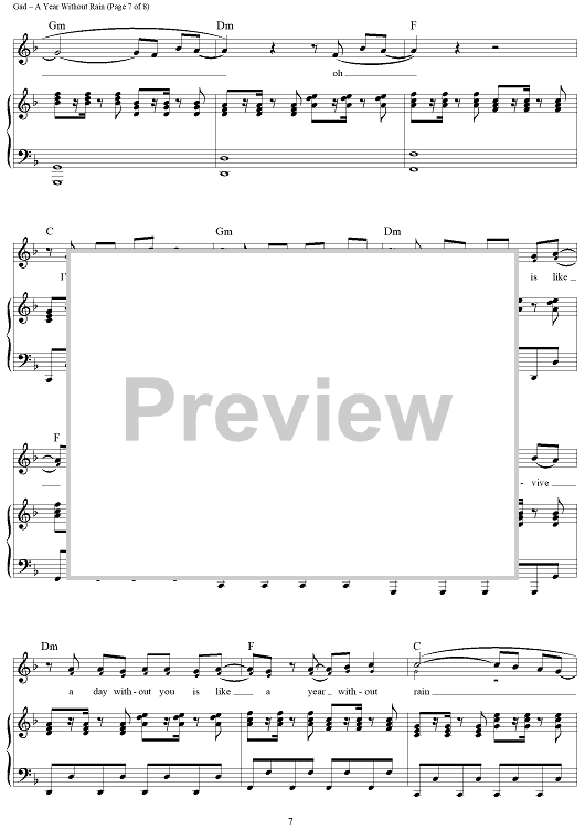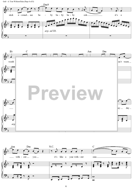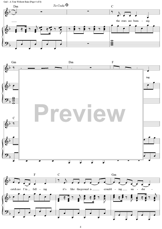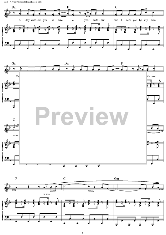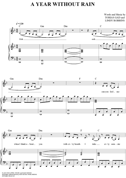 Digital Sheet Music for A Year Without Rain by Lindy Robbins, Toby Gad, Selena Gomez scored for Piano/Vocal/Chords; id:418507