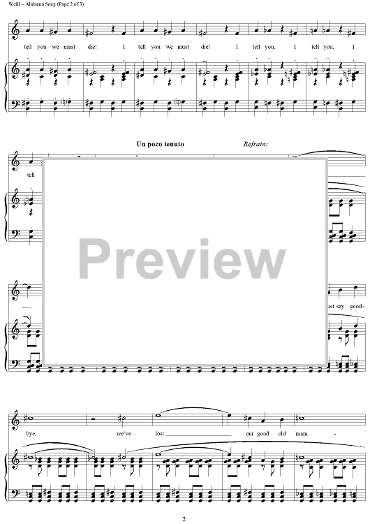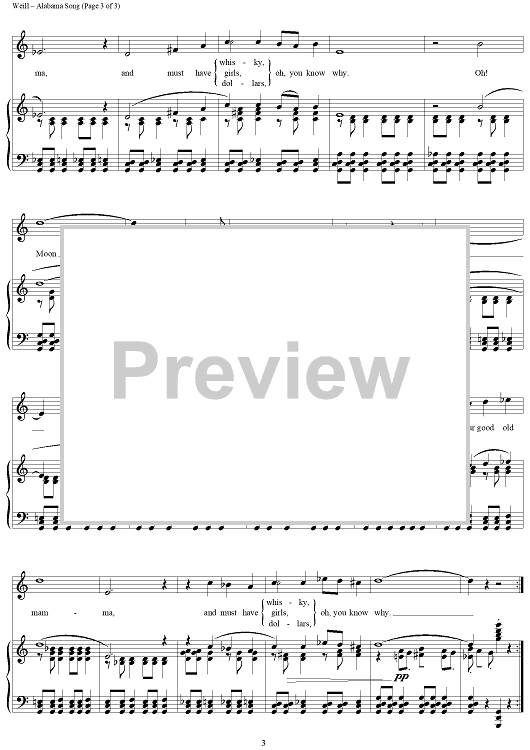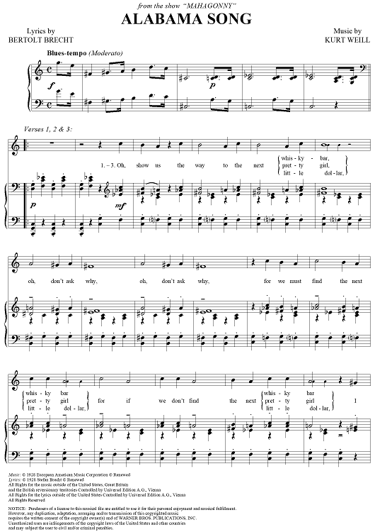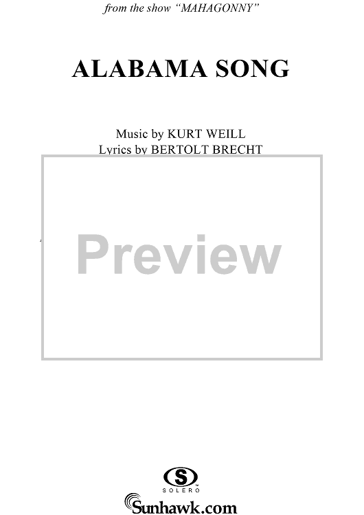 Digital Sheet Music for Alabama Song by Bertold Brecht, Kurt Weill scored for Piano/Vocal; id:263692