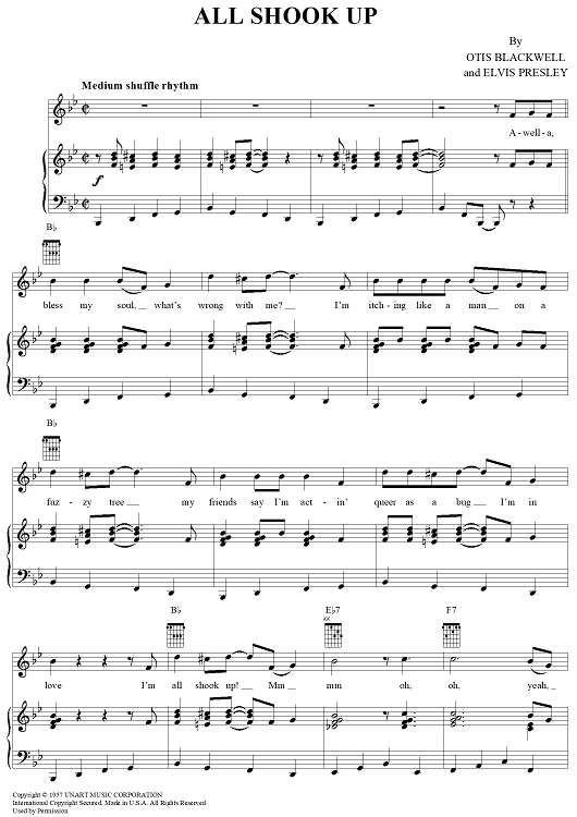 Digital Sheet Music for All Shook Up by Elvis Presley, John Davenport scored for Piano/Vocal/Chords; id:365249