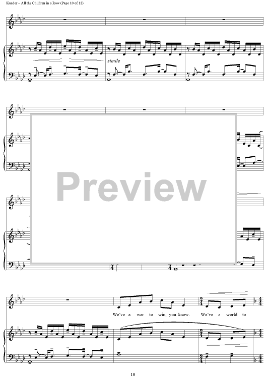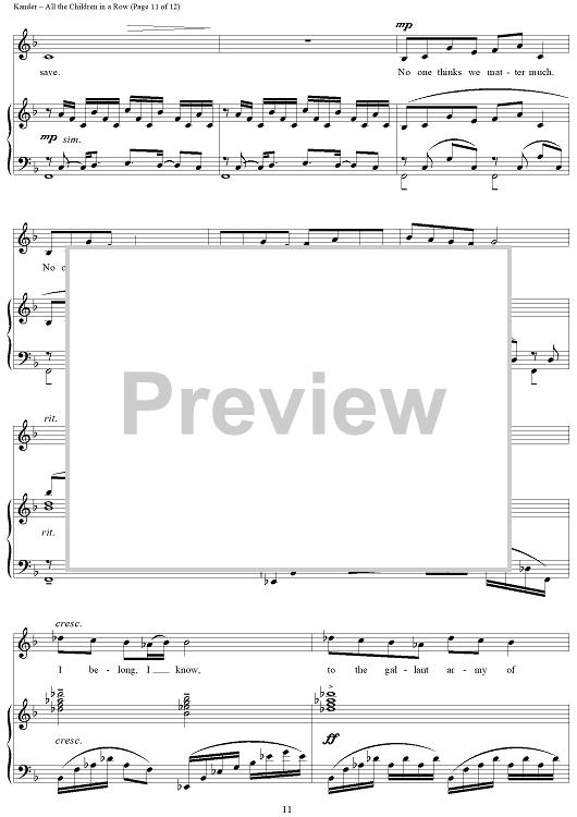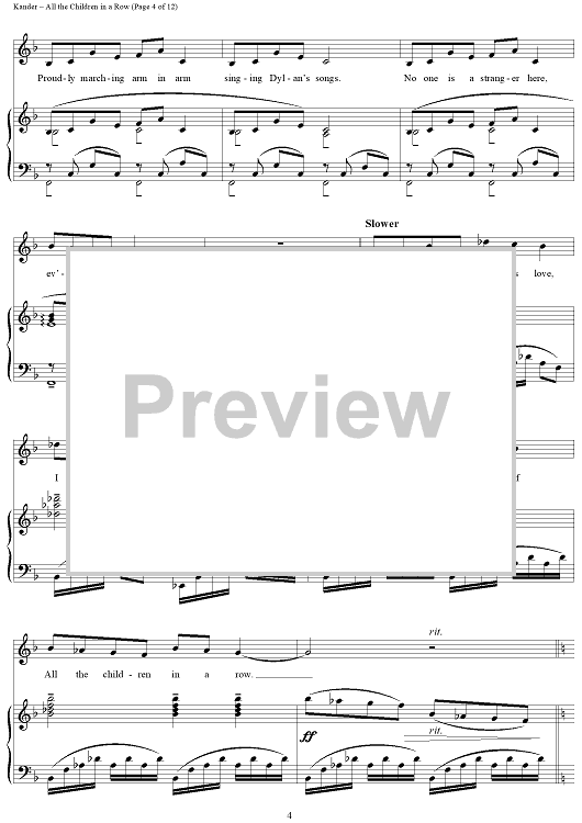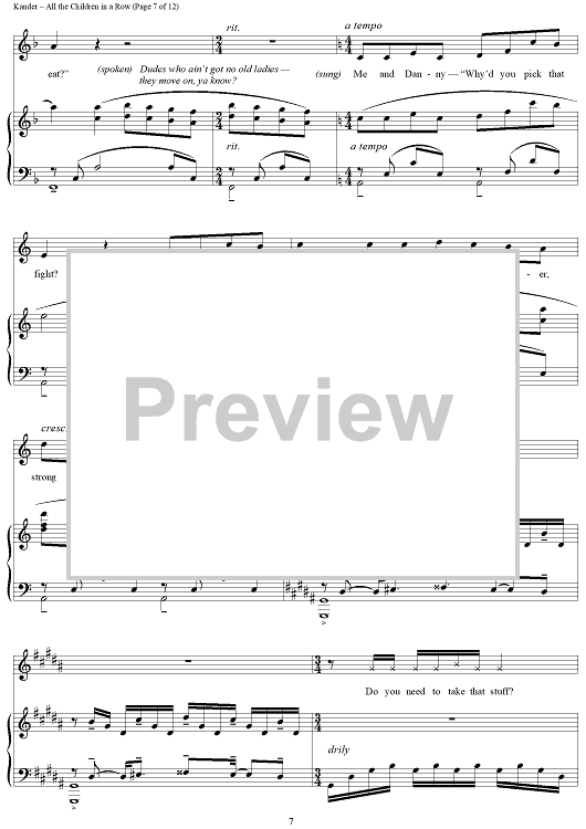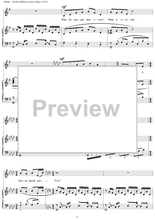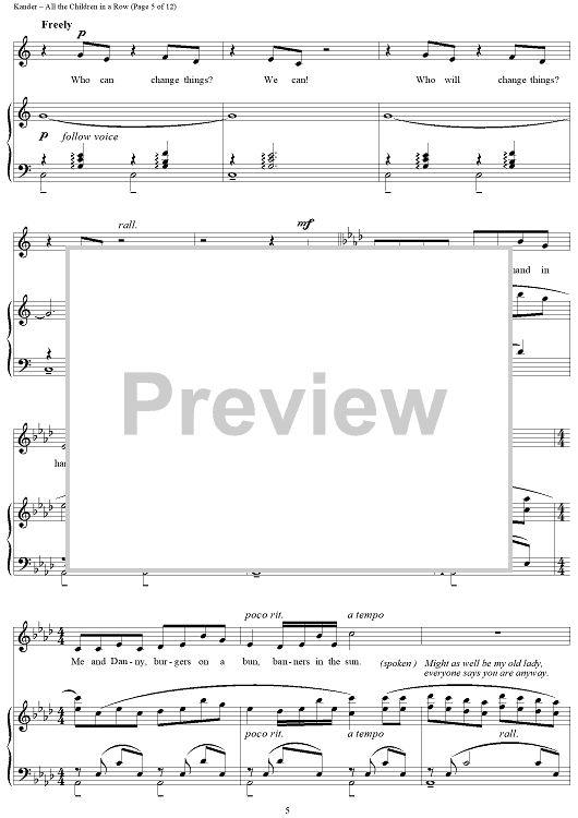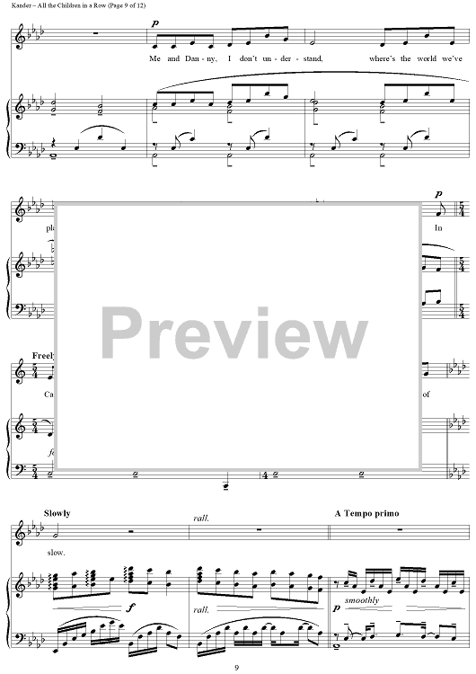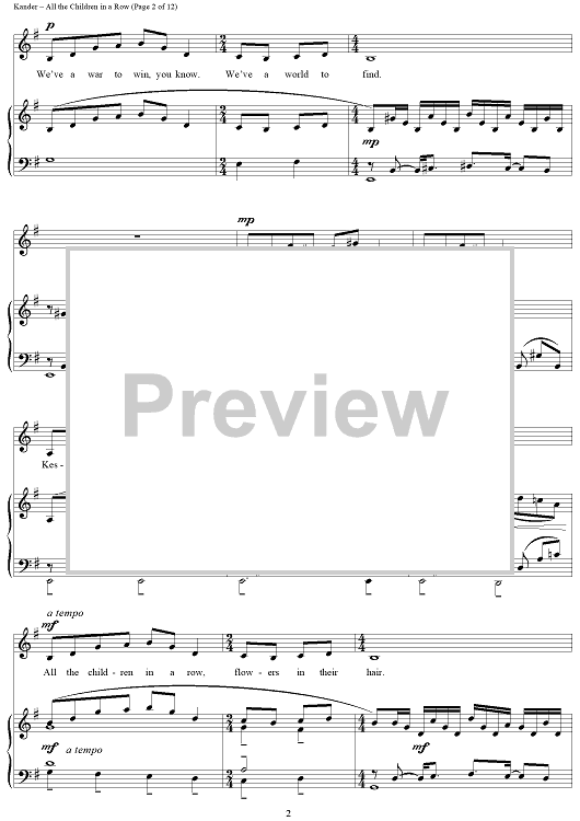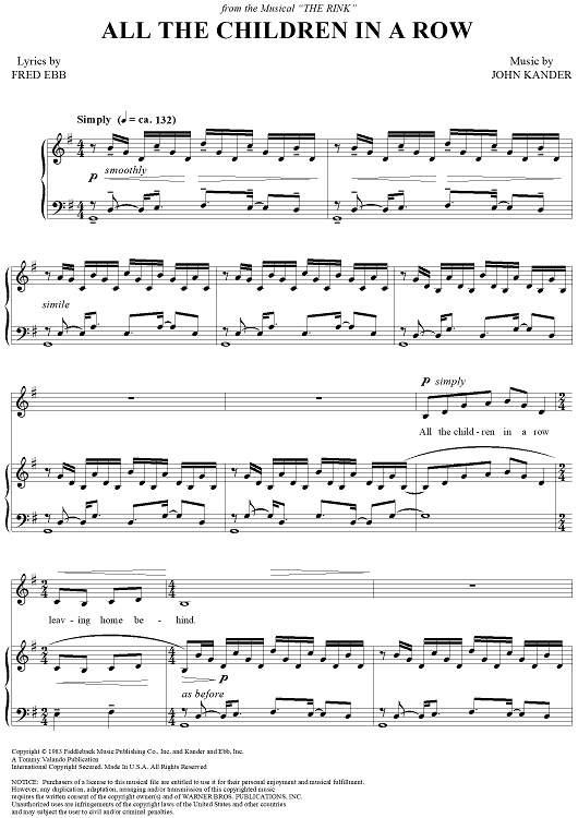 Digital Sheet Music for All the Children in a Row by John Kander, Fred Ebb scored for Piano/Vocal; id:265953