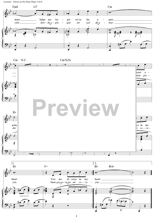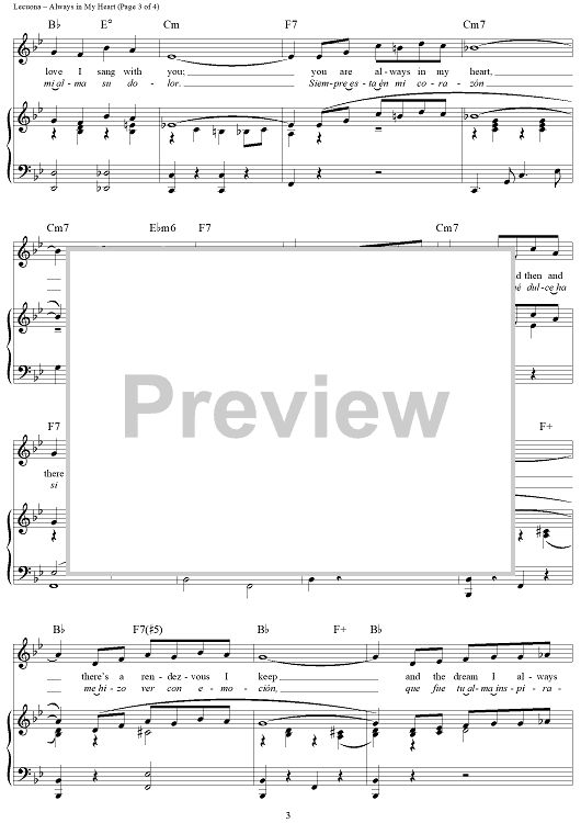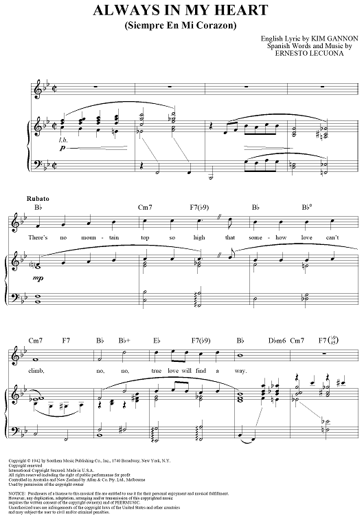 "Always in My Heart (Siempre En Mi Corazon)" Sheet Music by Ernesto Lecuona