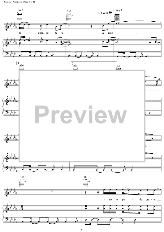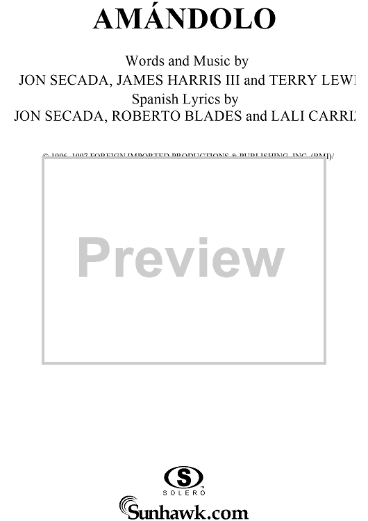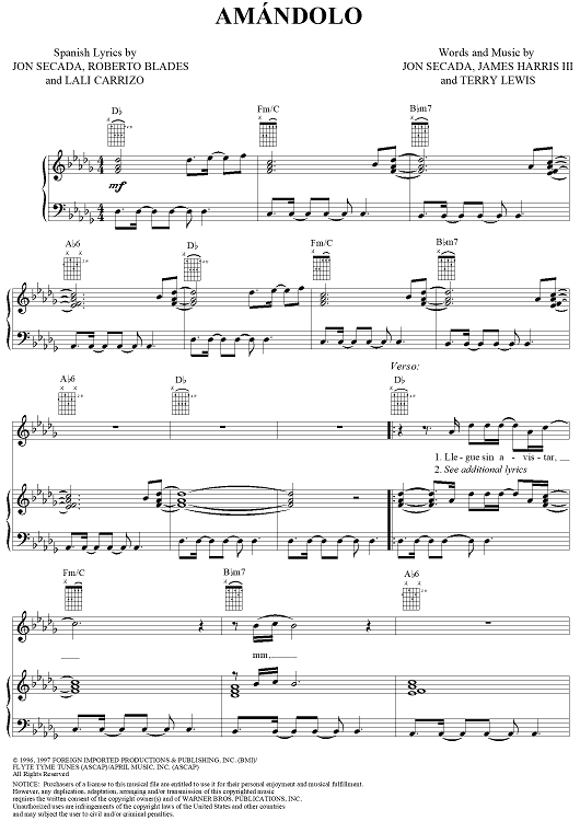 Digital Sheet Music for Amandolo by Jon Secada, Jimmy Jam, Terry Lewis, Lali Carrizo, Robert D. Blades scored for Piano/Vocal/Chords; id:116180