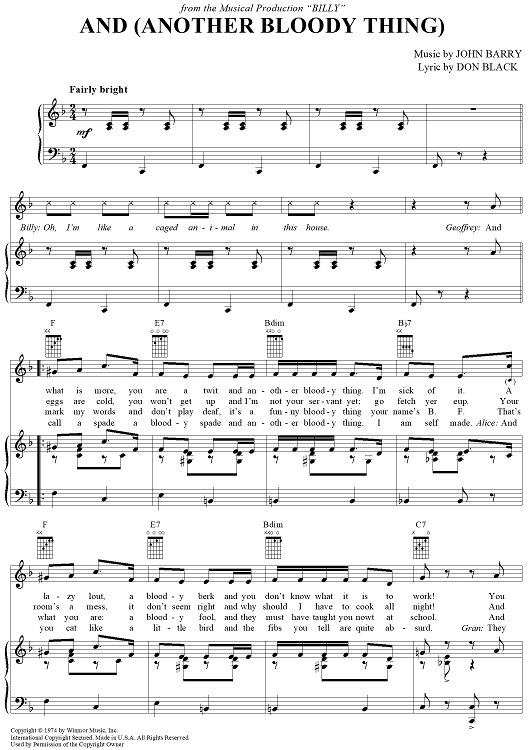 Digital Sheet Music for And (Another Bloody Thing) by John Barry, Don Black scored for Piano/Vocal/Chords; id:366157