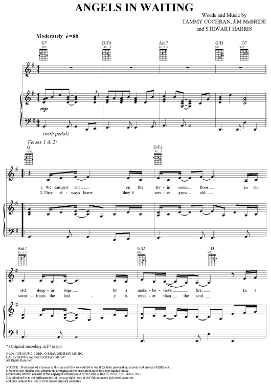 Digital Sheet Music for Angels in Waiting by Stewart Harris, Jim McBride, Tammy Cochran scored for Piano/Vocal/Chords; id:286112