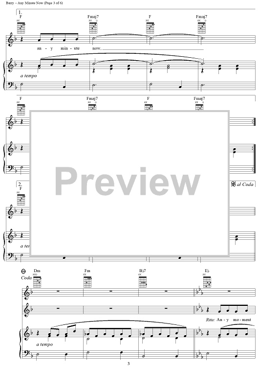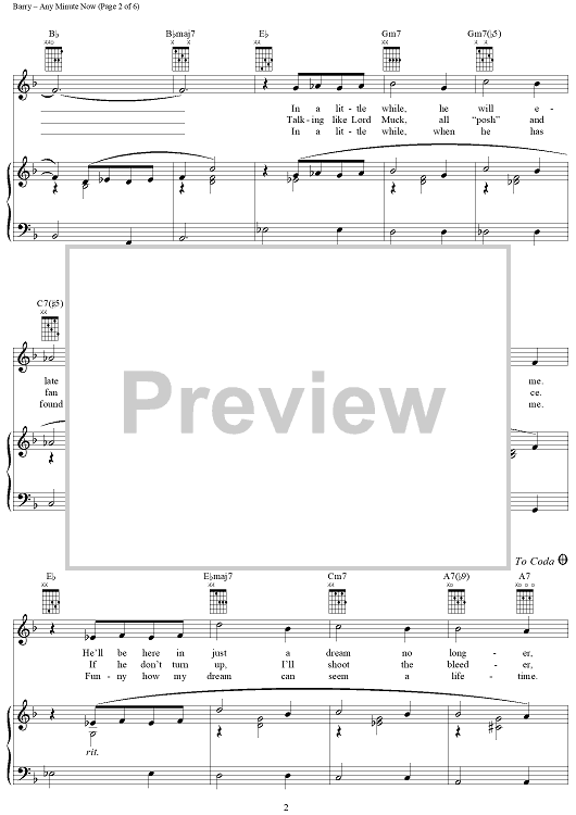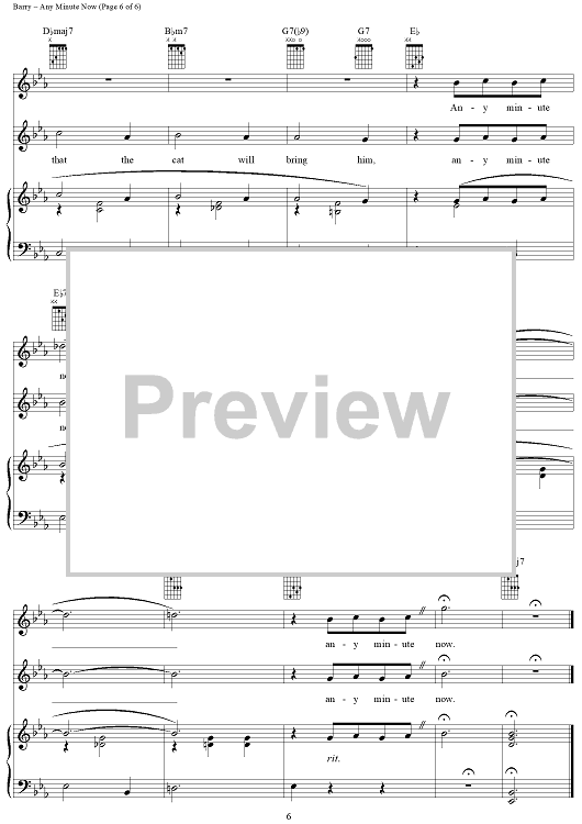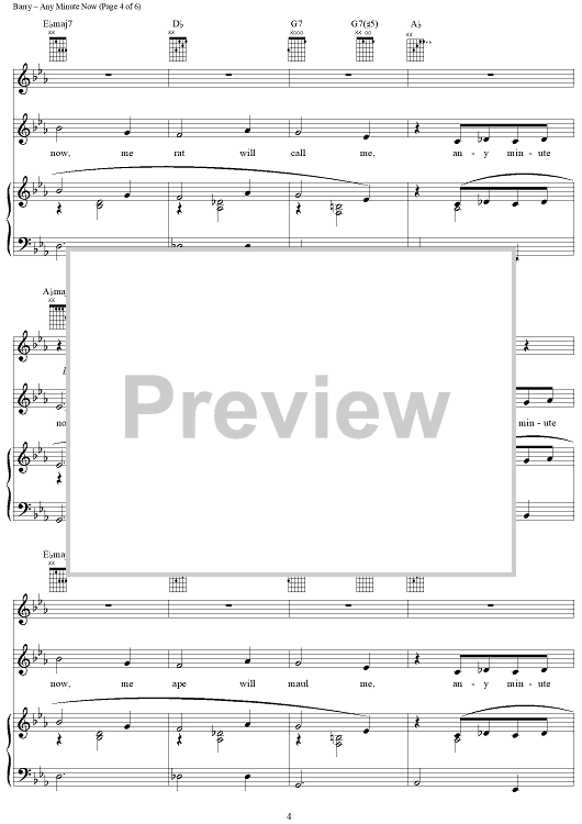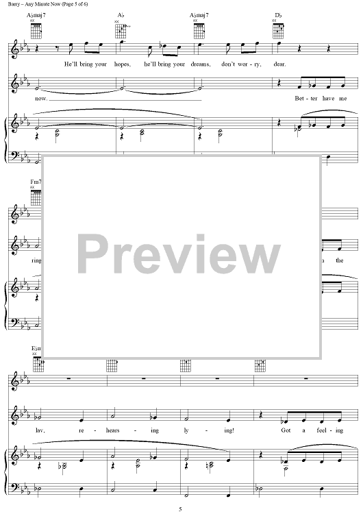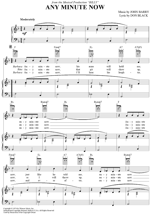 Digital Sheet Music for Any Minute Now by John Barry, Don Black scored for Piano/Vocal/Chords; id:366168