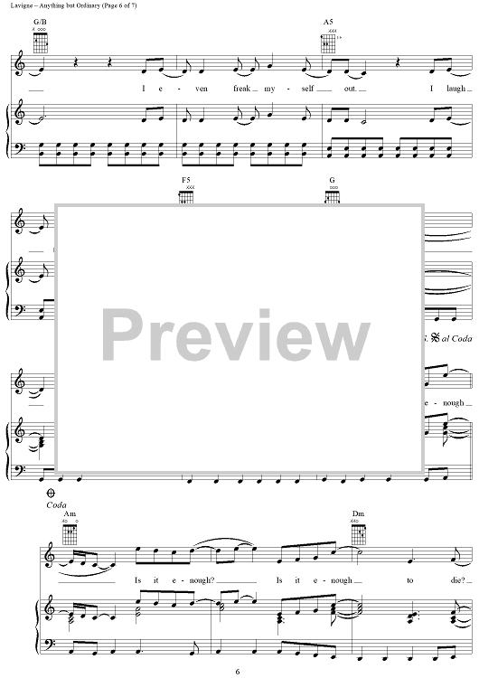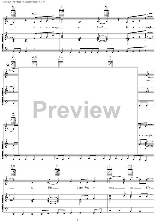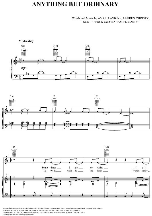 "Anything but Ordinary" Sheet Music by Avril Lavigne