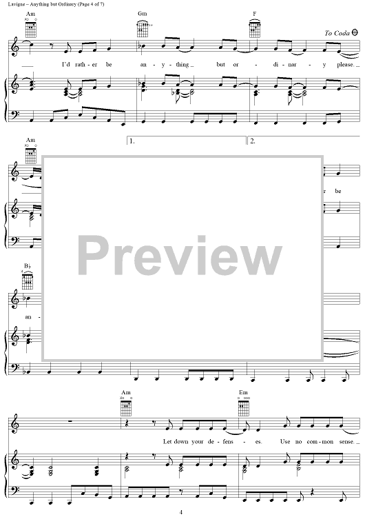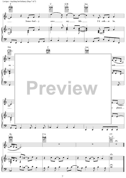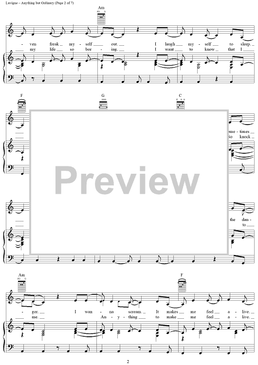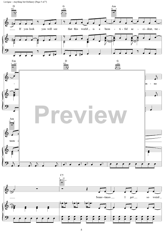 Digital Sheet Music for Anything but Ordinary by Lauren Christy, Avril Lavigne, Graham Edwards, Scott Spock scored for Piano/Vocal/Chords; id:367132