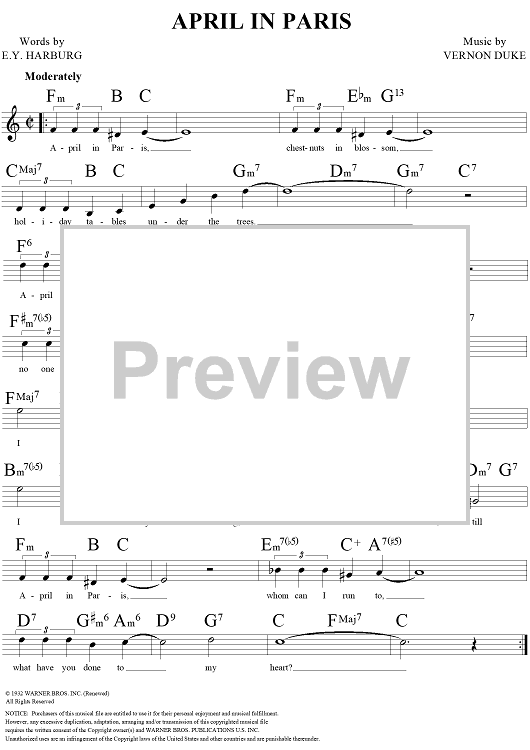 Digital Sheet Music for April In Paris by Count Basie, E.Y. "Yip" Harburg, Vernon Duke scored for Lead Sheet; id:109228