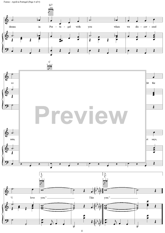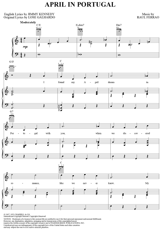 Digital Sheet Music for April in Portugal by Raul Ferrao, Les Baxter, José Galhardo scored for Piano/Vocal/Chords; id:286092