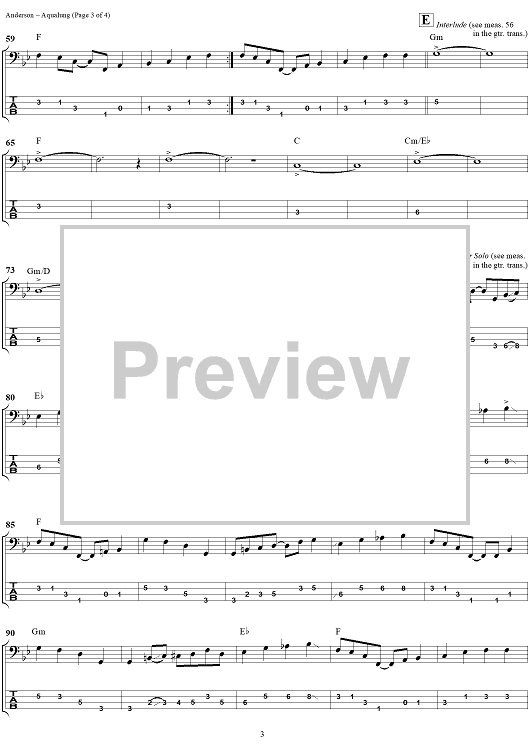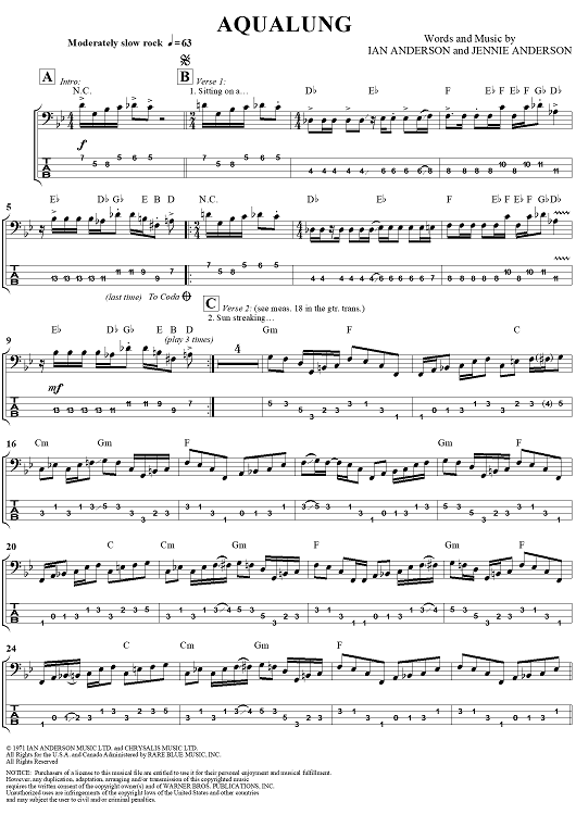 Digital Sheet Music for Aqualung by Ian Anderson, Jennie Anderson, Jethro Tull scored for Bass Guitar; id:284954