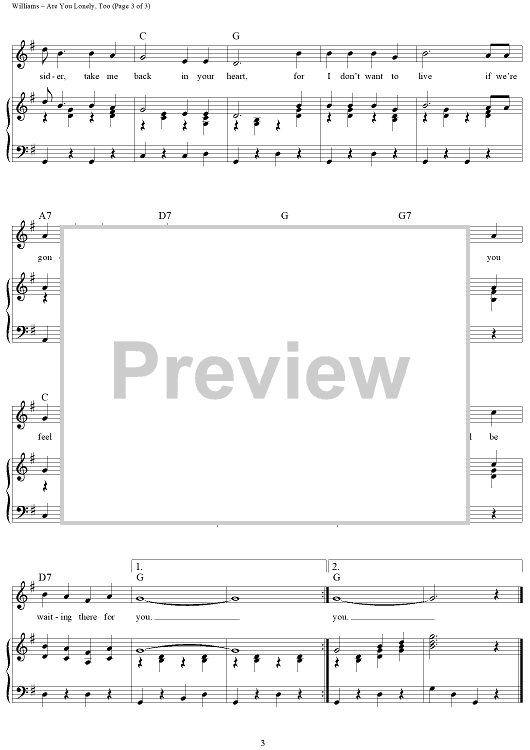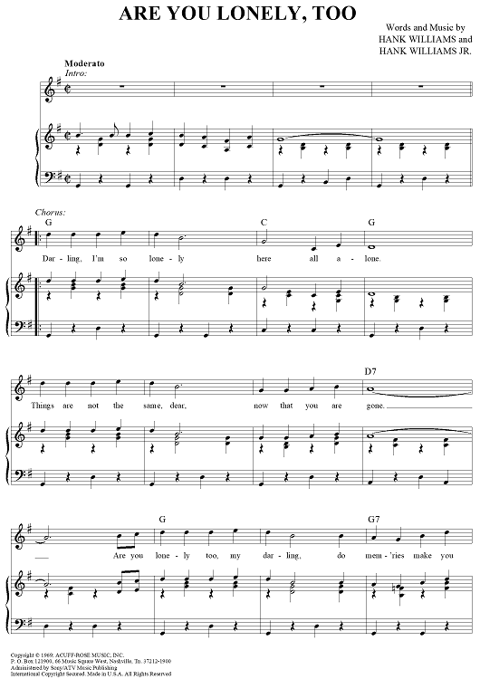 Digital Sheet Music for Are You Lonely, Too by Hank Williams, Hank Williams, Jr. scored for Piano/Vocal/Chords; id:361873