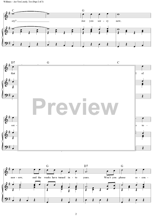 "Are You Lonely, Too" Sheet Music by Hank Williams