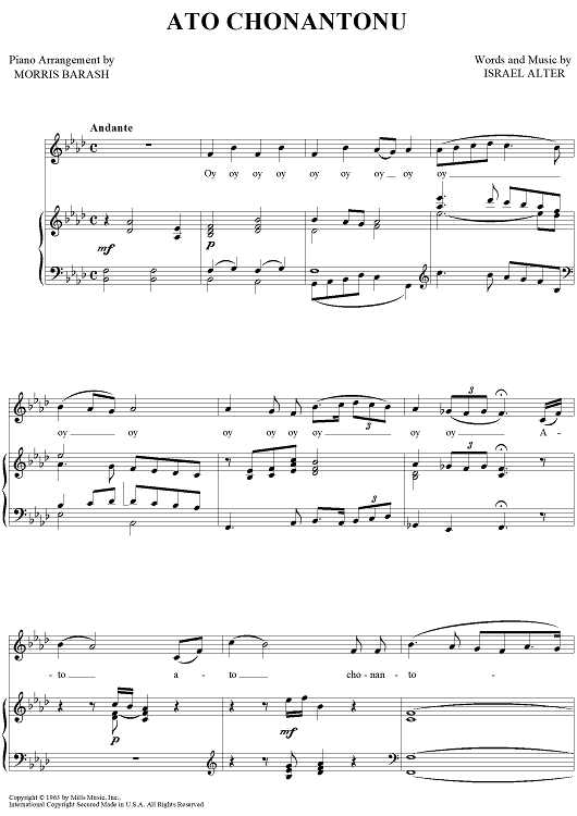 Digital Sheet Music for Ato Chnantonu by Israel Alter, Morris Barash scored for Piano/Vocal/Chords; id:417006