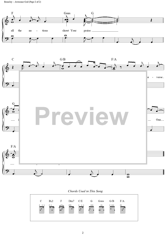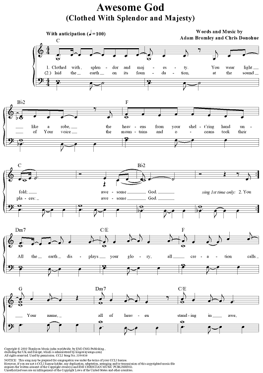 Digital Sheet Music for Awesome God (Clothed With Splendor and Majesty) by Adam Bromley, Chris Donohue scored for Piano/Vocal/Chords; id:361861