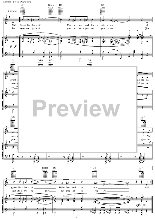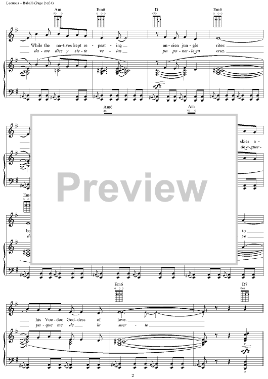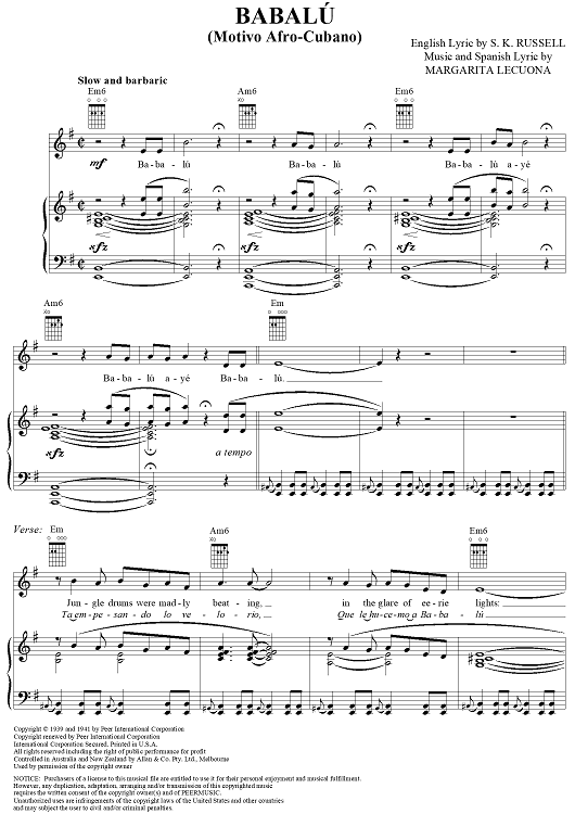 Digital Sheet Music for Babalu (Motivo Afro-Cubano) by Margarita Lecuona scored for Piano/Vocal/Chords; id:318370