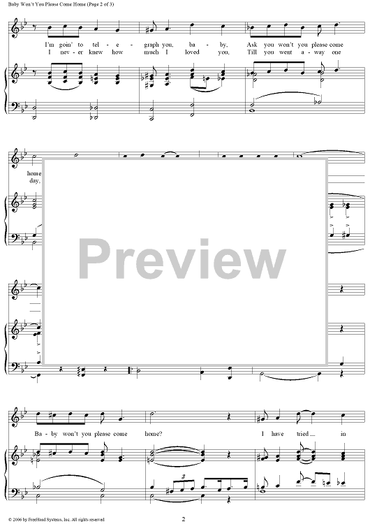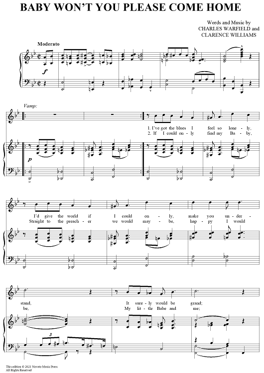 Digital Sheet Music for Baby Won't You Please Come Home by Clarence Williams, Charles Warfield scored for Piano/Vocal; id:320913