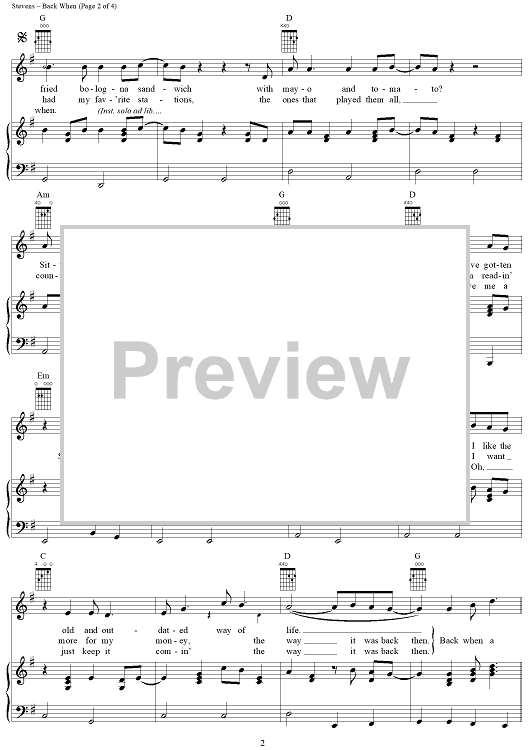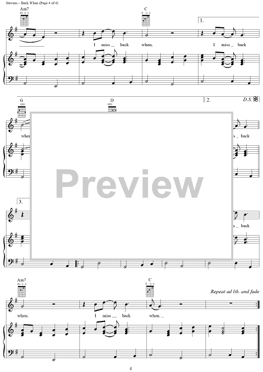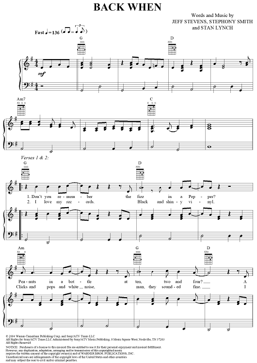 Digital Sheet Music for Back When by Tim McGraw, Jeff Stevens, Stephony Smith, Stan Lynch scored for Piano/Vocal/Chords; id:308247