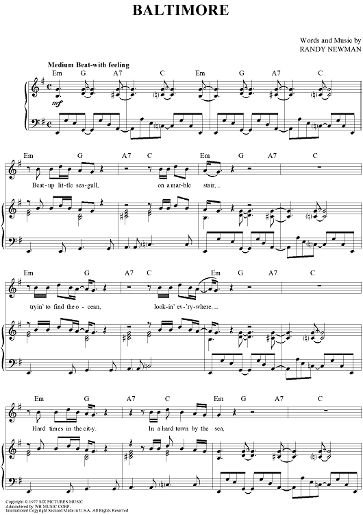 "Baltimore" Sheet Music by Randy Newman