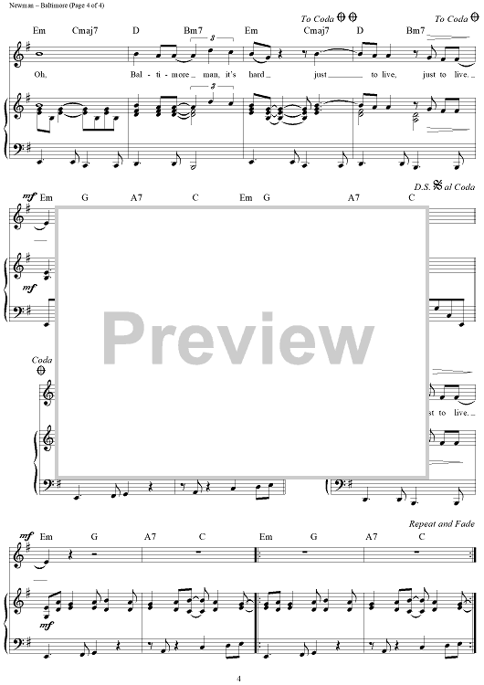 Digital Sheet Music for Baltimore by Randy Newman scored for Piano/Vocal/Chords; id:428775