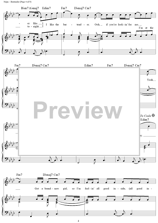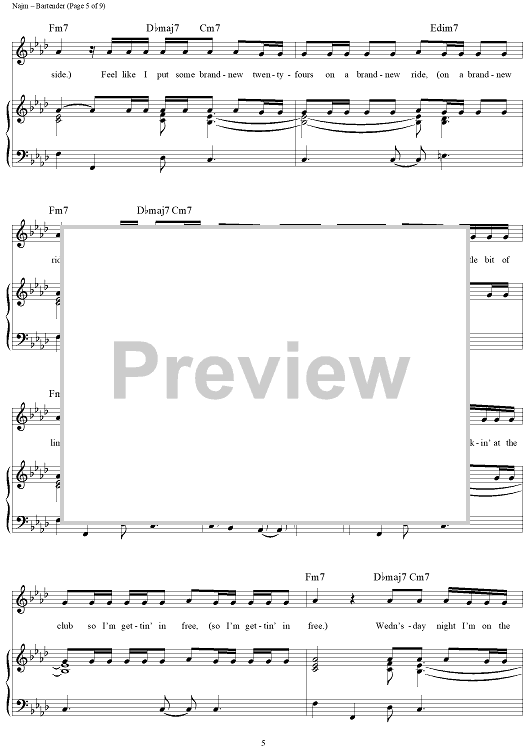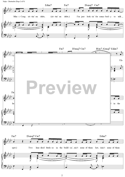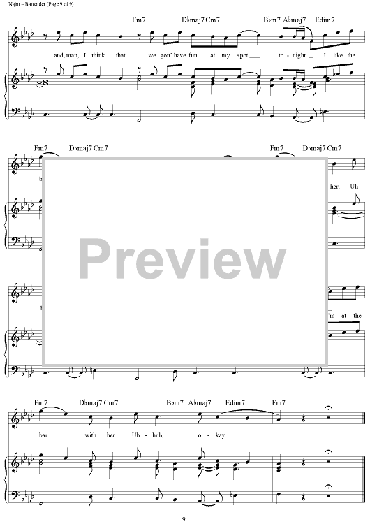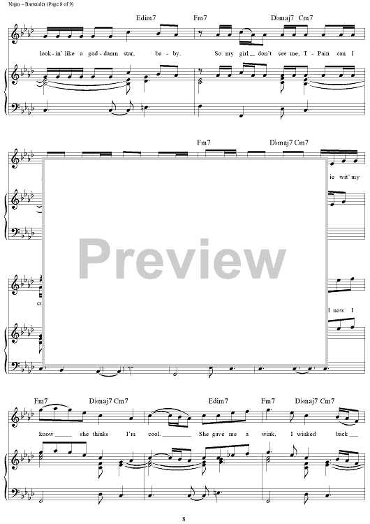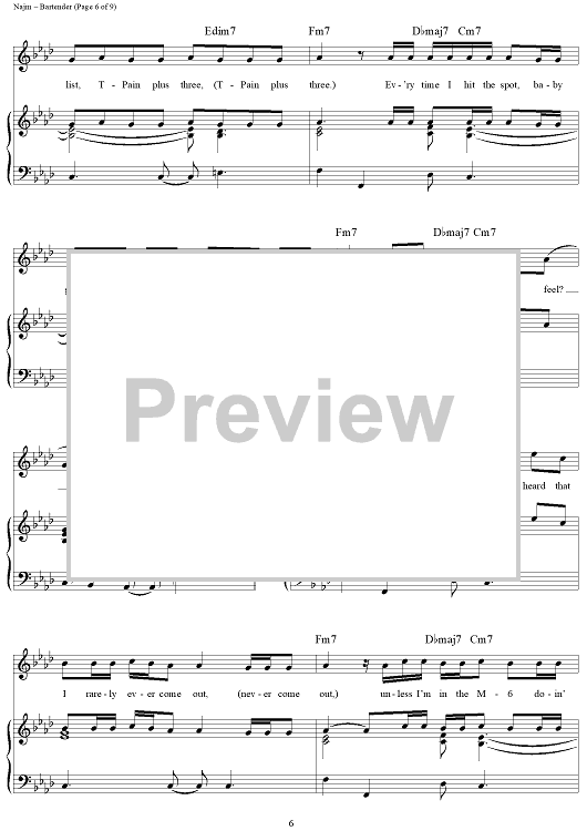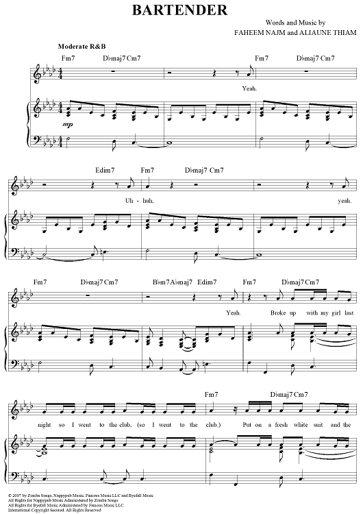 Digital Sheet Music for Bartender by T-Pain, Faheem Najm, Akon scored for Piano/Vocal/Chords; id:366195