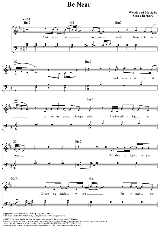 Digital Sheet Music for Be Near by Shane Barnard, Shane and Shane scored for Piano/Vocal/Chords; id:319919