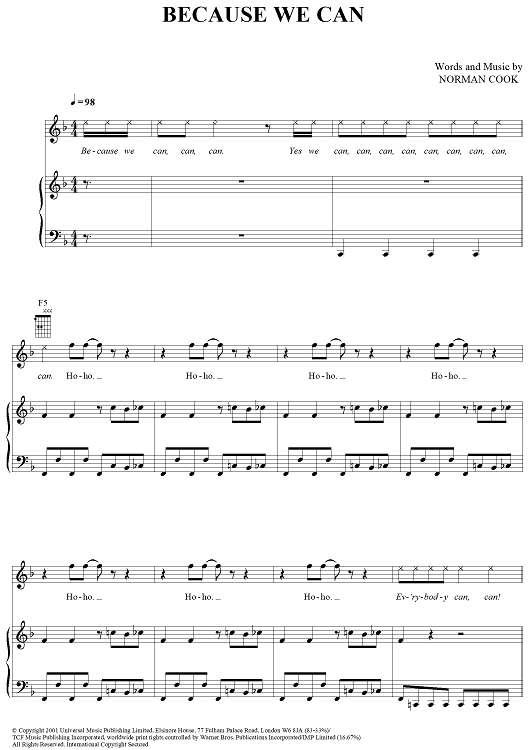 Digital Sheet Music for Because We Can by Fatboy Slim scored for Piano/Vocal/Chords; id:365466