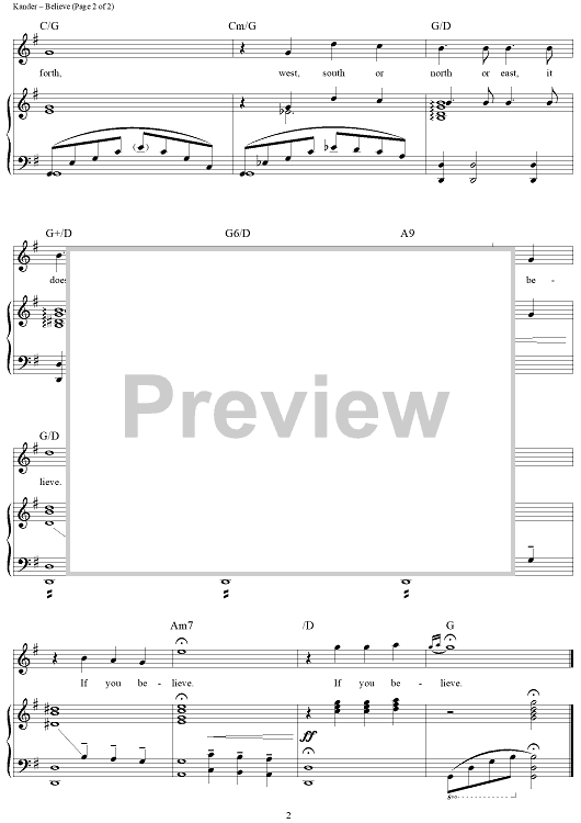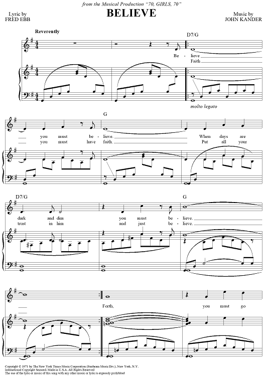 Digital Sheet Music for Believe by John Kander, Fred Ebb scored for Piano/Vocal/Chords; id:366030