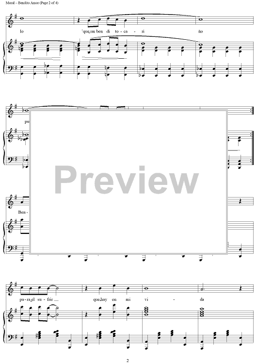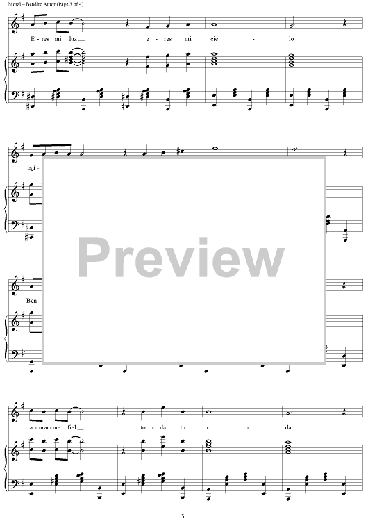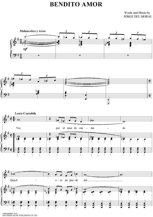 Digital Sheet Music for Bendito Amor by Jorge Del Moral scored for Piano/Vocal/Chords; id:422802