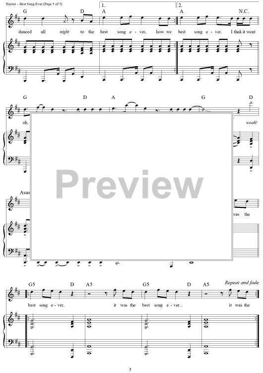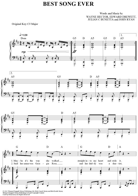 Digital Sheet Music for Best Song Ever by Wayne Hector, Ed Drewett, One Direction, Julian Bunetta, John Ryan scored for Piano/Vocal/Chords; id:437400