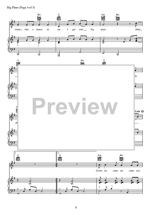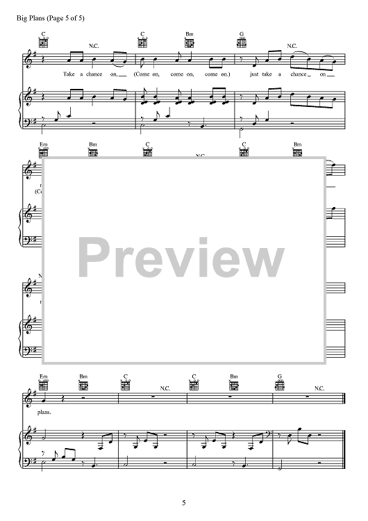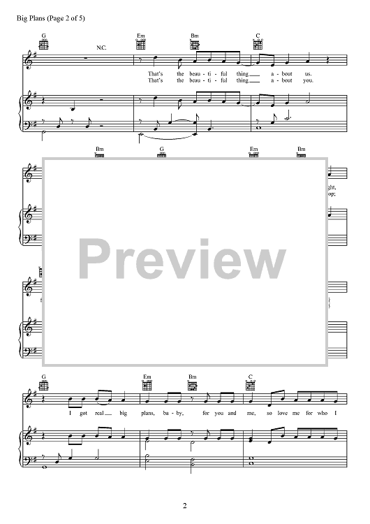Digital Sheet Music for Big Plans by Why Don't We, Thomas Eriksen, James Lavigne, Jacob Torrey, Corbyn Besson, Jonah Marais, Daniel Seavey scored for Piano/Vocal/Chords; id:467315