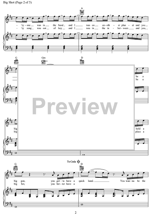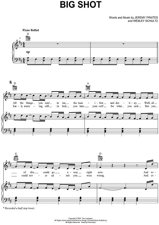 Digital Sheet Music for Big Shot by Jeremy Fraites, Wesley Schultz, The Lumineers scored for Piano/Vocal/Chords; id:469934