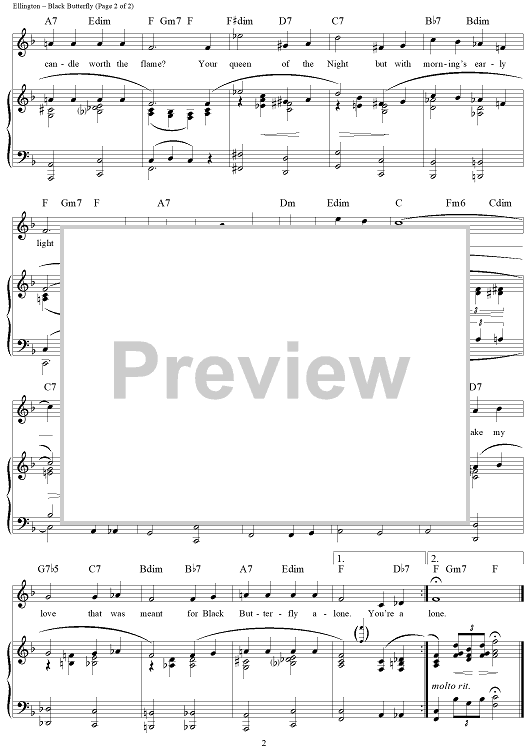 Digital Sheet Music for Black Butterfly by Duke Ellington, Irving Mills, Ben Curruthers scored for Piano/Vocal/Chords; id:270673