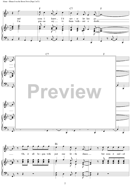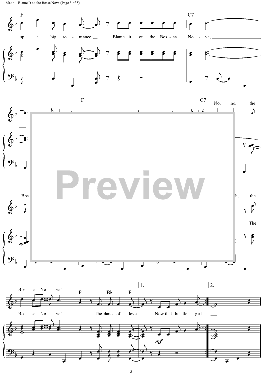 Digital Sheet Music for Blame It on the Bossa Nova by Barry Mann, Cynthia Weil, Eydie Gorme scored for Piano/Vocal/Chords; id:366096
