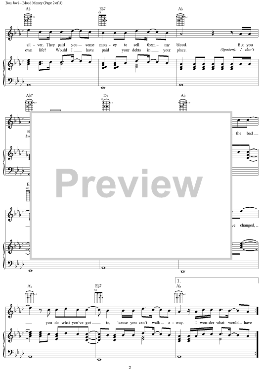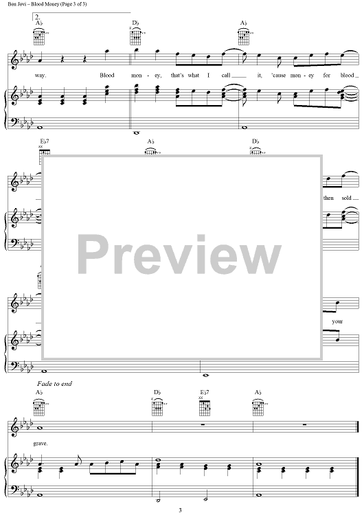 Digital Sheet Music for Blood Money by Bon Jovi, Jon Bon Jovi scored for Piano/Vocal/Chords; id:293321
