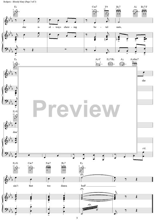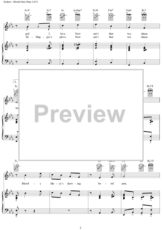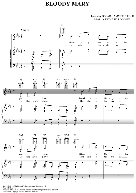 Digital Sheet Music for Bloody Mary by Richard Rodgers, Oscar Hammerstein II scored for Piano/Vocal/Chords; id:367051