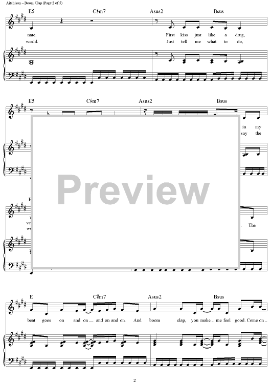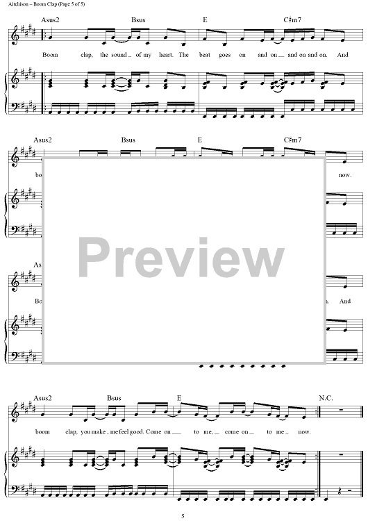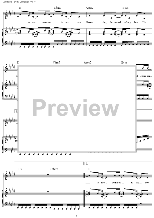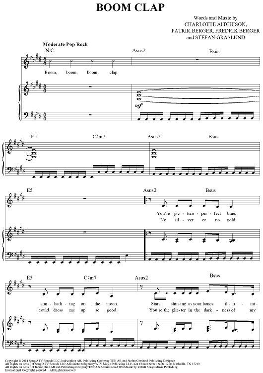 Digital Sheet Music for Boom Clap by Patrik Berger, Charlotte Aitchison, Fredrik Berger, Stefan Graslund, Charli XCX scored for Piano/Vocal/Chords; id:443413