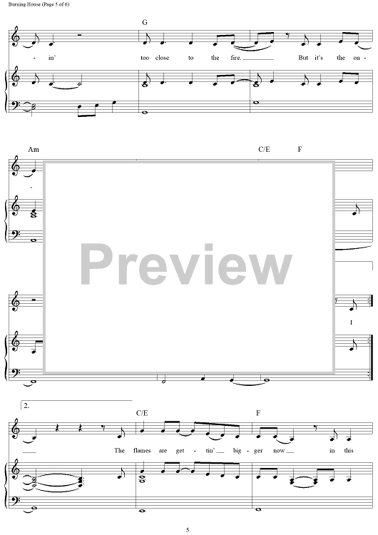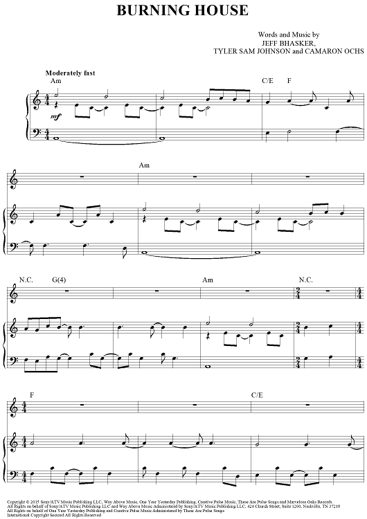 Digital Sheet Music for Burning House by Jeff Bhasker, Tyler Johnson, Camaron Ochs, Cam scored for Piano/Vocal/Chords; id:459099